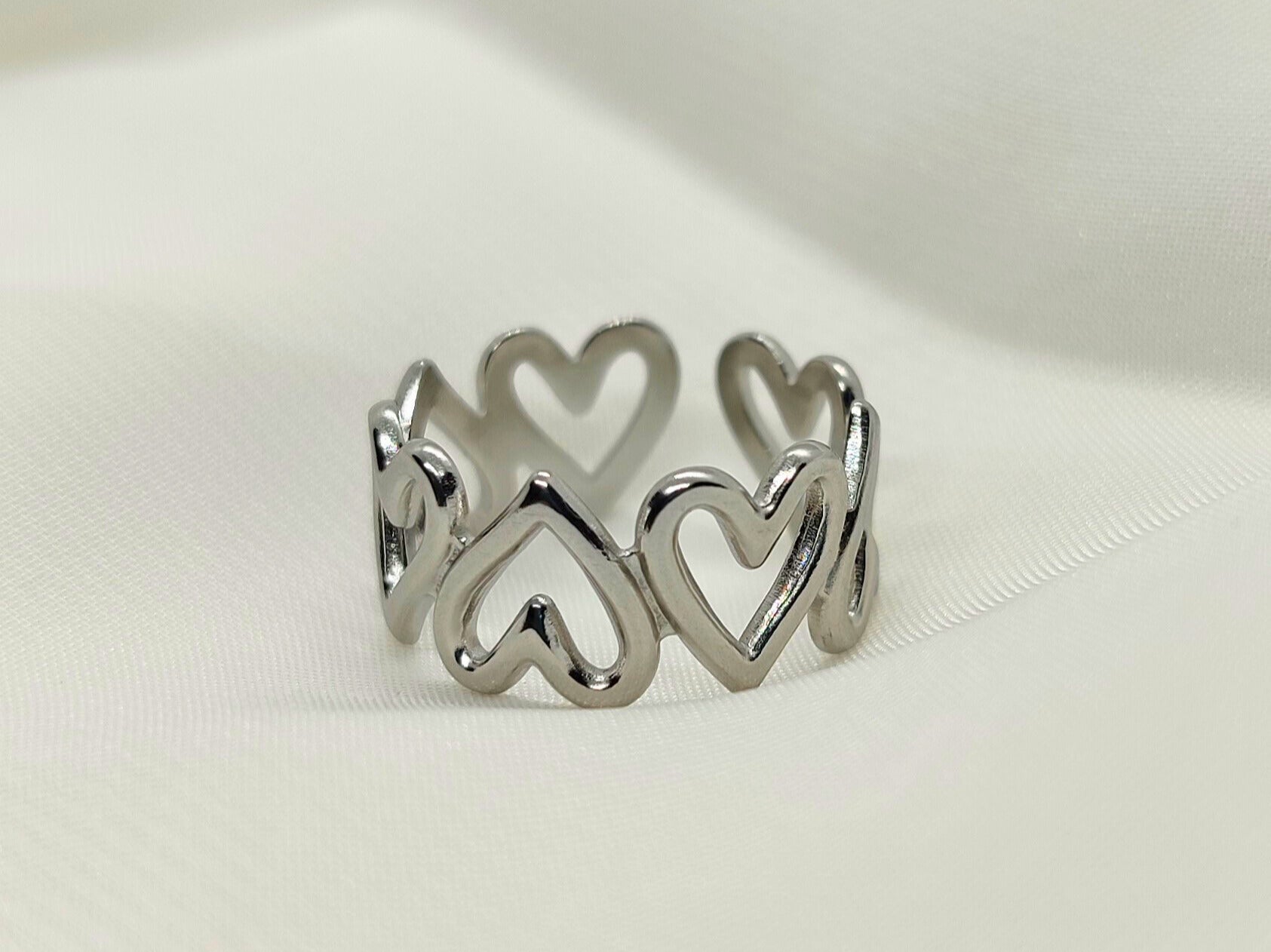 Romantik pur! Dieser zarte Amore-Ring mit filigranen Herzformen ist ein echter Hingucker. Seine verspielte Eleganz macht ihn zum perfekten Geschenk oder Accessoire für besondere Momente.